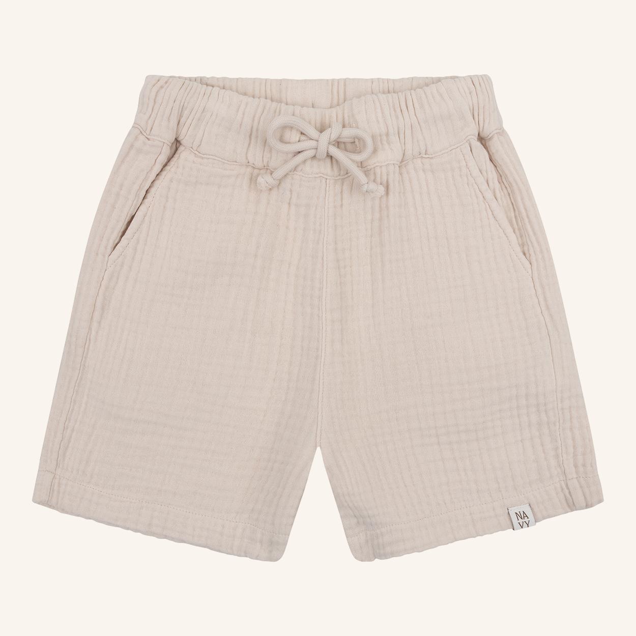 De Niels short is gemaakt van luchtige mousseline in een warme almond tint. De comfortabele fit en elastische taille maken ’m ideaal voor warme zomerdagen.